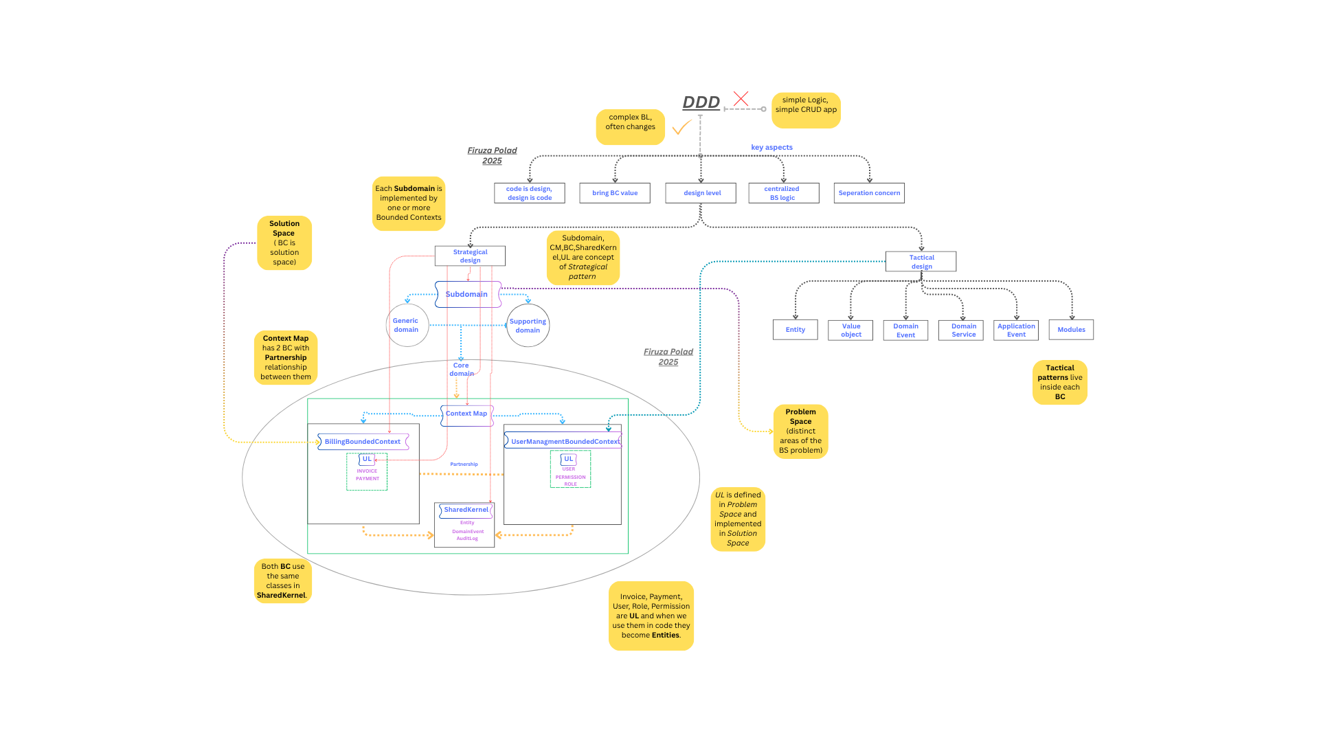 - Strategic/Tactical designs: in DDD it brings both, Strategic and Tactical