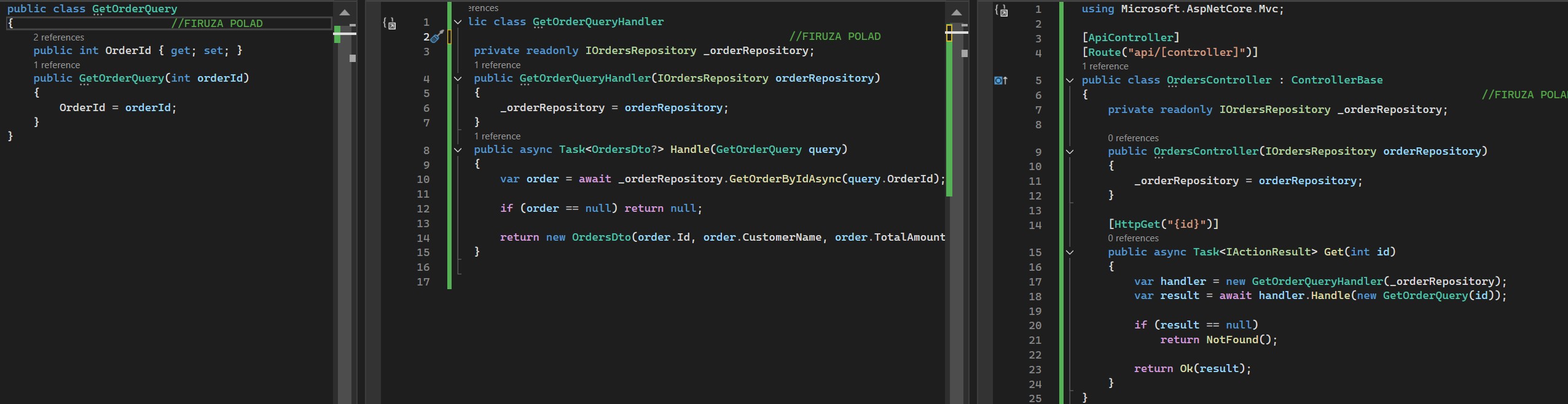 has one handler and this handler interact with repositories (or UOF).