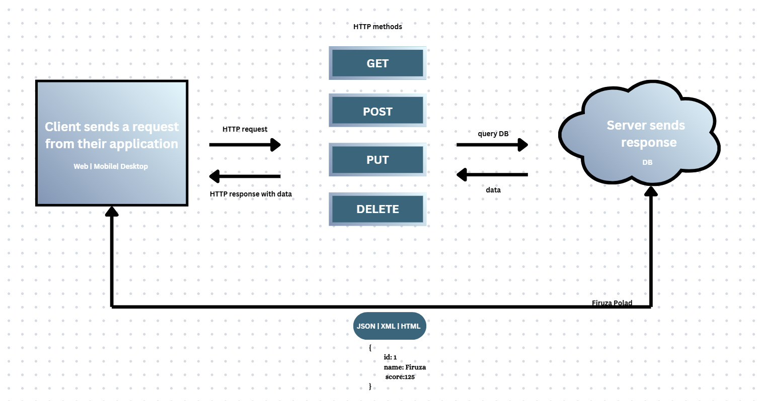 - REST: representational state transfer, is an architecture style that use standart HTTP methods to perform operation. It relies on HTTPS for security, stateless (each request from the client to the server must contain all information necessary to understand and process that request, the server does not store session information between different request), meaning each request from client must contain all necessary information to complete the request. Are lightweight, easy to implement, return data in format like JSON,XML,HTML etc. Usage in Web/Mobile applications due its simplicity.