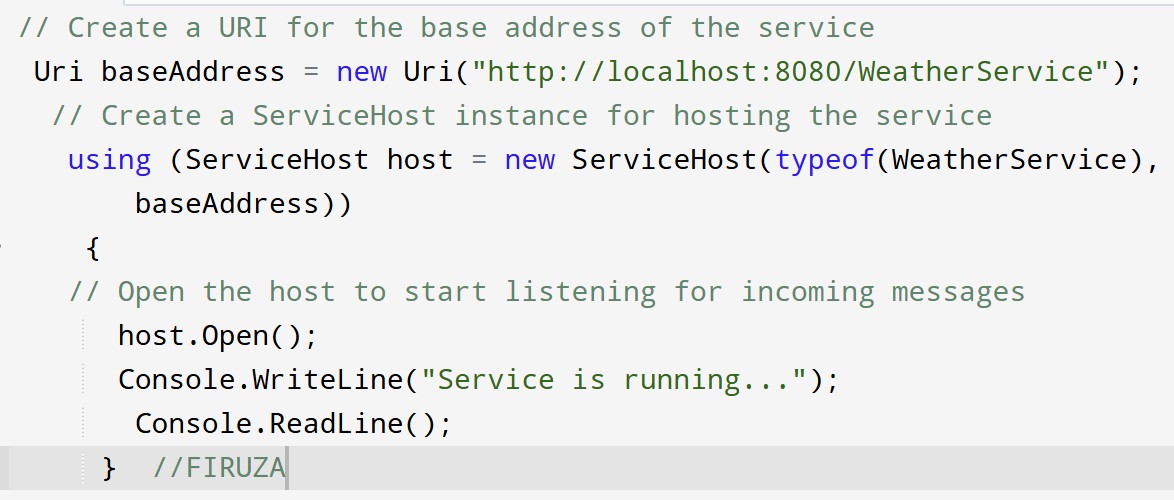 <service name="WeatherService"> //Contains the service endpoint information.