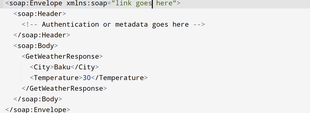 <soap:Header> //contain additional info like security, routing